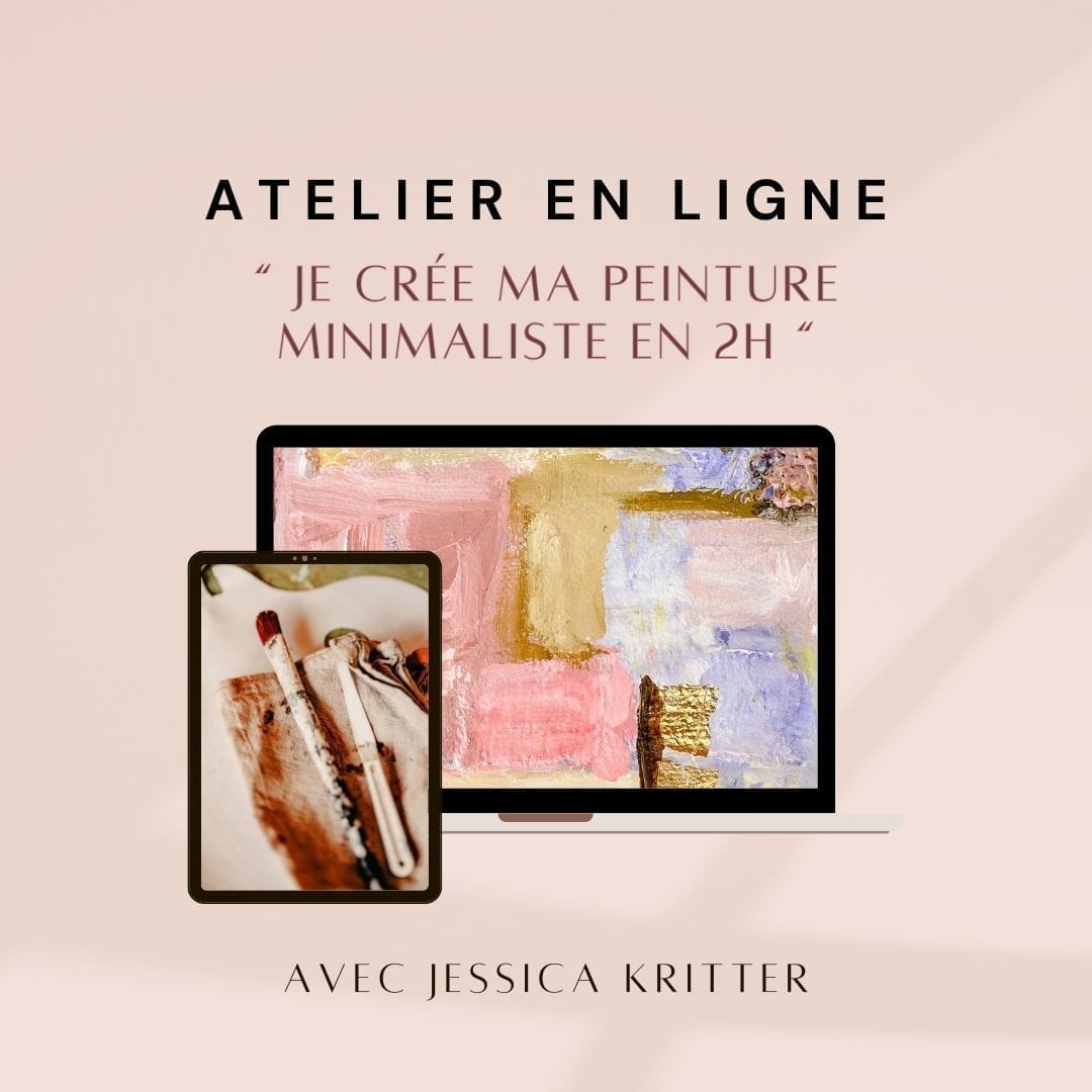 L’atelier “Je crée ma peinture minimaliste” est un atelier en ligne tout doux, à suivre chez toi, à ton rythme.