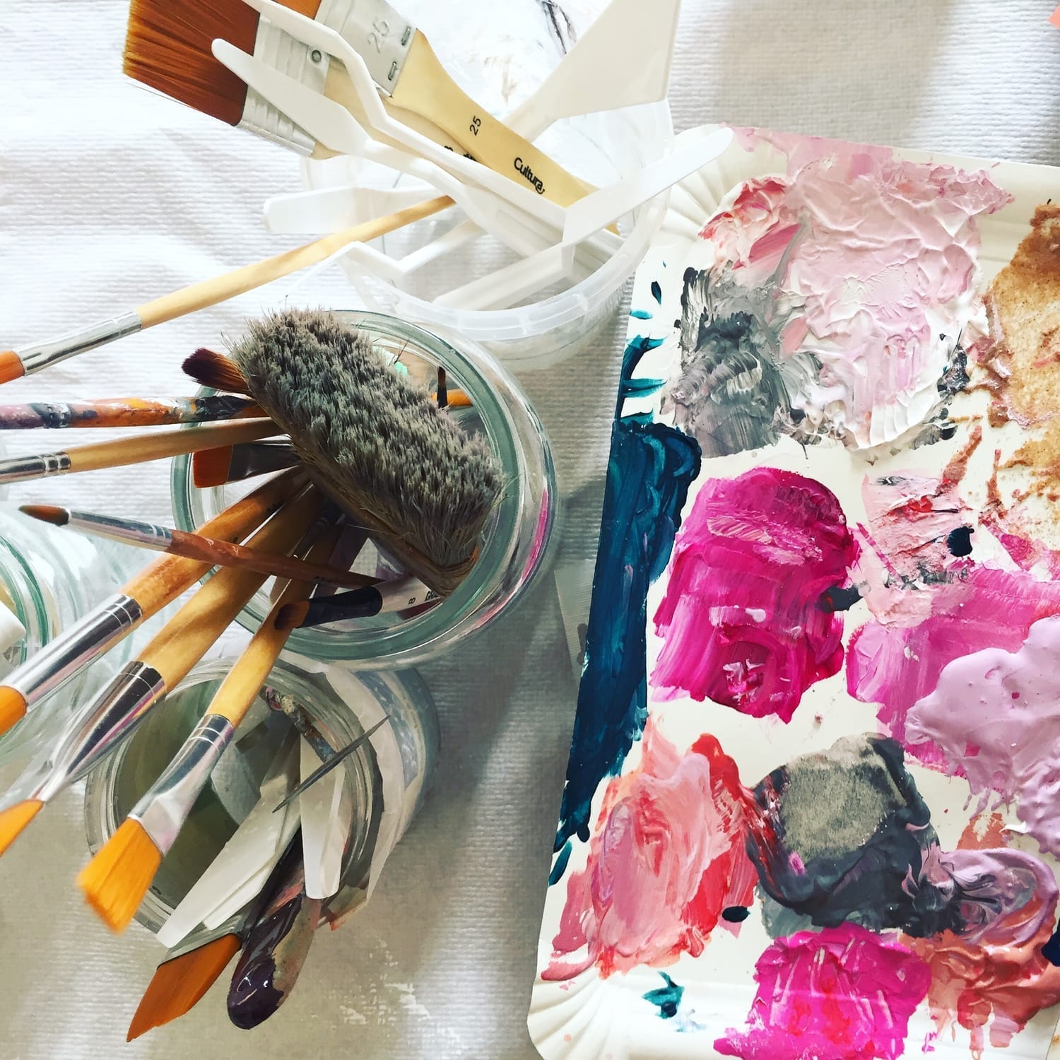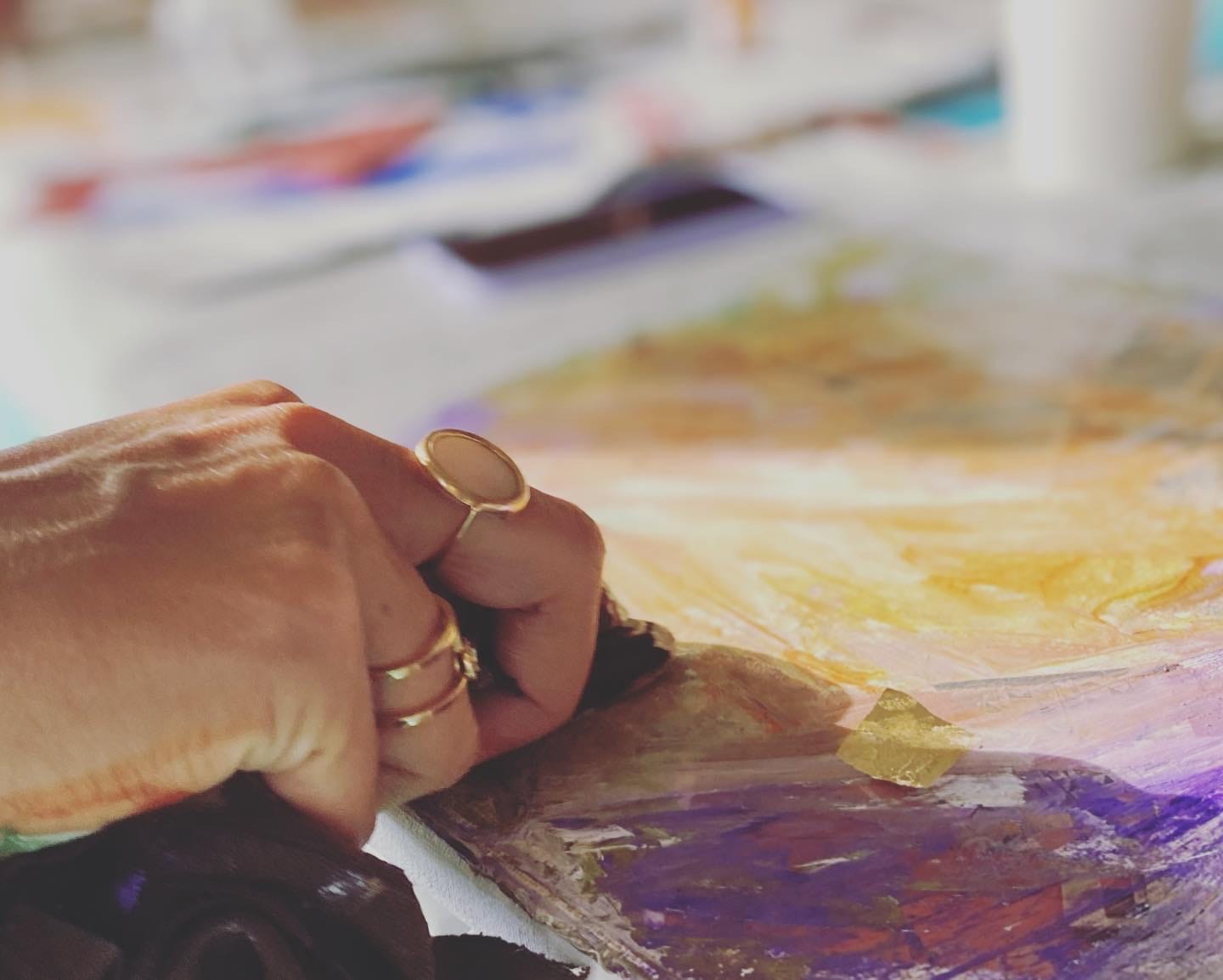 "Je n’avais jamais peint avant. J’ai adoré la douceur de l’atelier, je me suis sentie portée et j’ai créé une toile que je n’aurais jamais imaginée. Merci Jessica !"